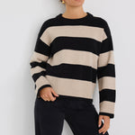 Gravity Black & Stone Stripe Crew Neck Knit Jumper