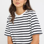 Binding Ecru Navy Stripe Boxy Fit Tee
