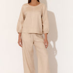 Freedom Natural Linen Zip Back Wide Leg Pant