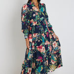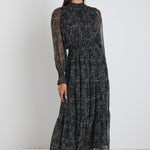 Soiree Black Pattern Front Button LS Maxi Dress
