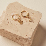 Star And Moon Huggie Gold Earrings