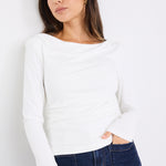 Recall Ivory Sketch Floral Pleat Sleeve Crew Top