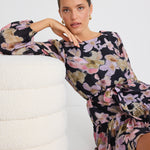 Delphi Cream Garden Print Drop Waist Belted Mini Dress