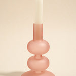Double Bubble Frosted Pink 14cm Glass Taper Candle Holder