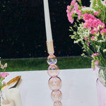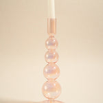 Four Bubble Pearl Pink 25cm Glass Taper Candle Holder