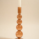 Four Bubble Brown 25cm Glass Taper Candle Holder