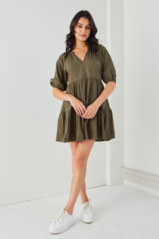 Wren Chocolate Linen Blend SS Shirred Bodice Midi Dress