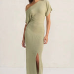 Celeste Sage Off Shoulder SS Knit Maxi Dress