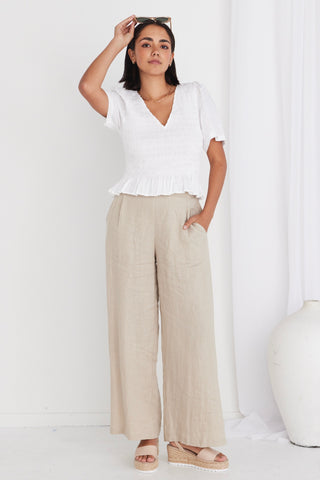 Effortless Ecru LS Shirred Tiered Midi Dress