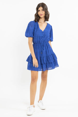 Whispered Promises Navy Button Front Mid Sleeve Maxi Dress