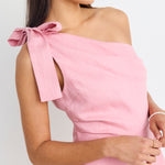 Ecstatic Blush Linen Blend One Shoulder Bow Mini Dress