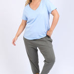 Poetry Ice Blue V Neck Short Sleeved Tee