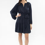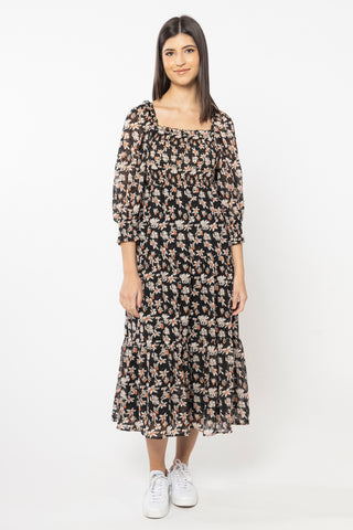 Sincere Black Stripe Floral Button Front LS Midi Dress