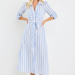 Cyprus Blue Stripe LS Shirt Midi Dress