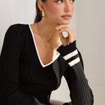 Marine Black Contrast Piped Linen Strappy Maxi Dress