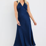 Reign Navy Polka Dot Georgette Strappy Maxi Dress