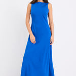 Knockout Electric Blue Linen Blend V Back Slip Dress