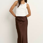 Otherworldly Chocolate Polka Dot Satin Bias Slip Midi Dress