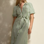 Roma Navy Stripe SS Poet Midi Dress