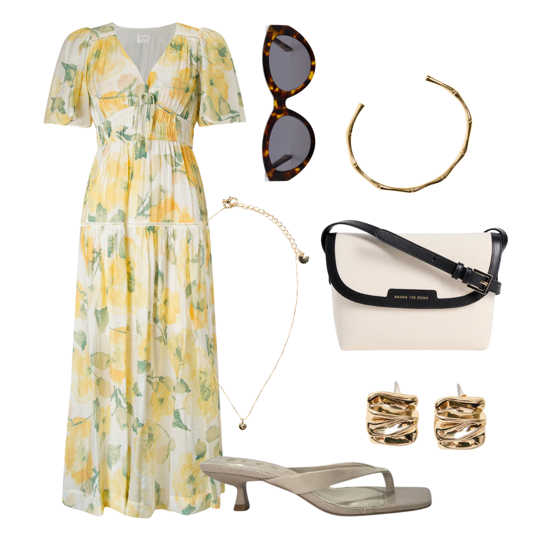 Step into the moment with a floaty floral dress that feels instantly occasion-ready. Paired with soft gold jewellery, chic tort sunglasses and a sleek shoulder bag, this look brings effortless polish to every RSVP. Perfect for garden ceremonies, long tables and all the special moments in between.