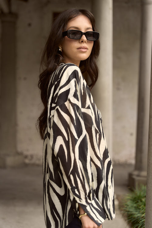 - Striking abstract tiger print in black and ivory