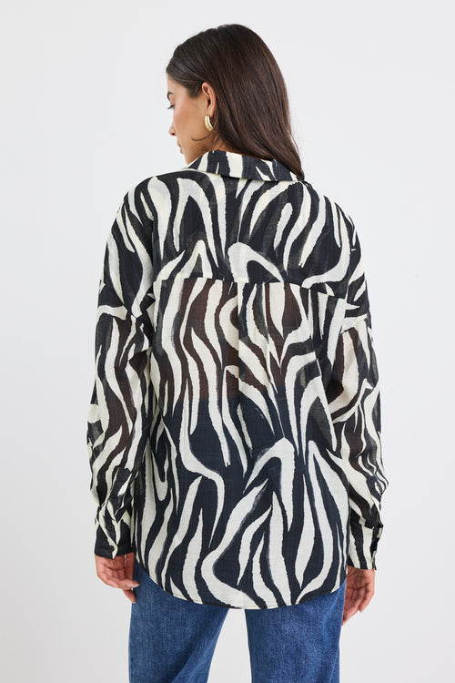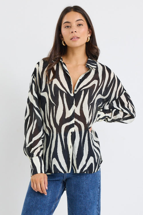 Architect Black Tiger Print Long Sleeve Blouse