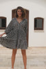 Aries Black Gingham Mid Sleeve Tiered Button Front Mini Dress