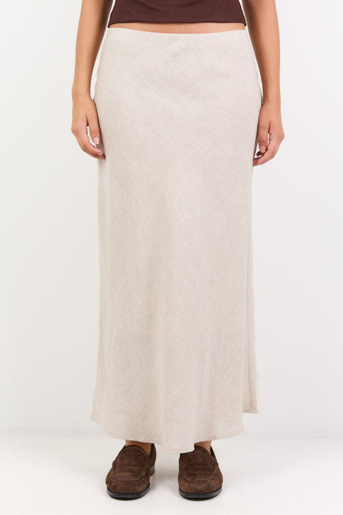 Bliss Natural Linen Bias Midi Skirt