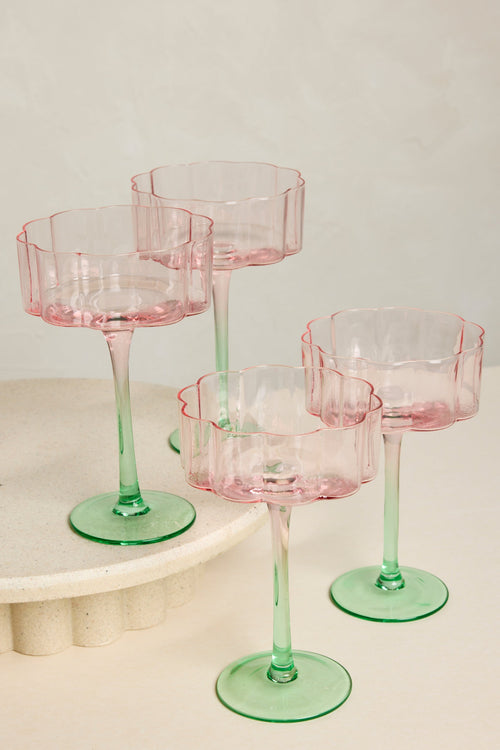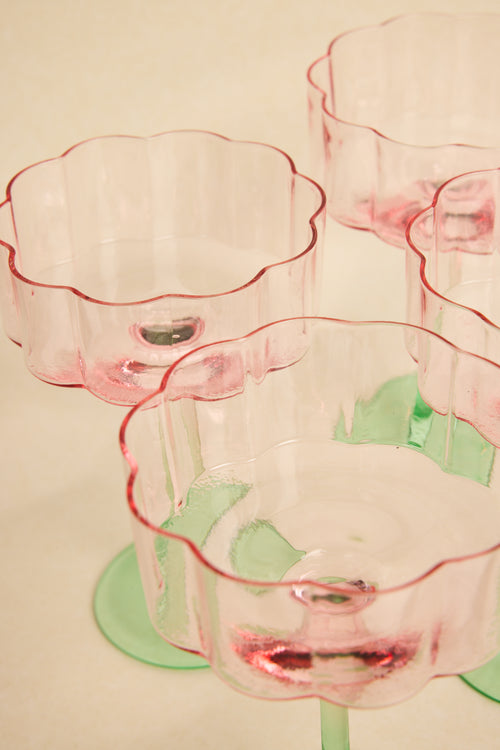 Bloom Wavy SET 4 Pink Green Cocktail Glass