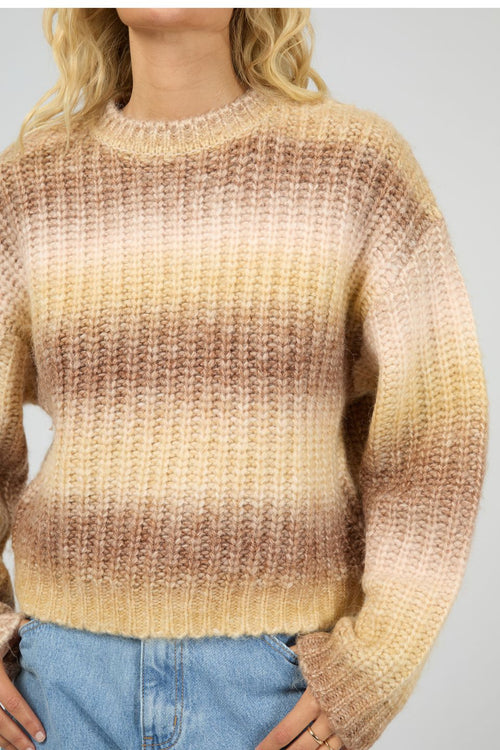The Bree knit is your cosy go-to with serious charm. Spun in a soft wool blend, it wraps you in warmth while showing off a beautiful gradient of earthy neutrals. The textured rib knit adds depth, making this an easy piece to reach for on repeat.