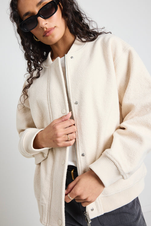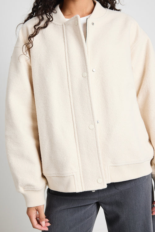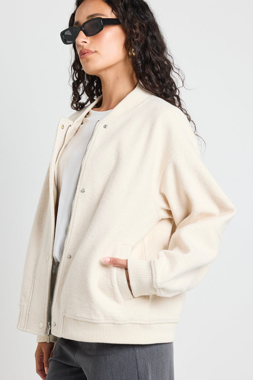 The Brisk jacket brings easy polish to everyday dressing with its sporty silhouette and cloud-soft texture. Designed with a bomber shape and fully lined for comfort, it’s that go-to layer you’ll grab for everything from coffee runs to casual catch-ups.