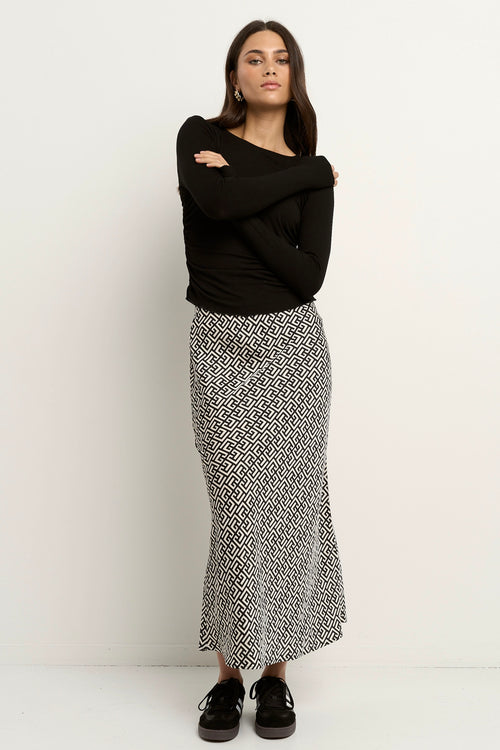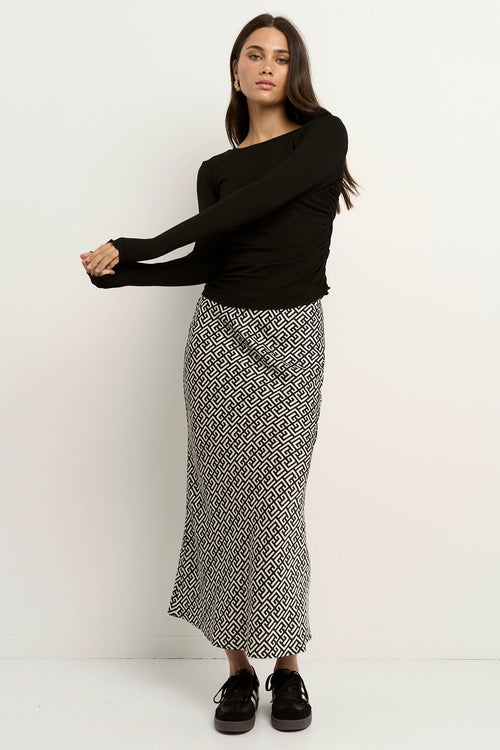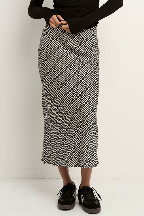 Cleo Geometric Satin Bias Cut Midi Skirt