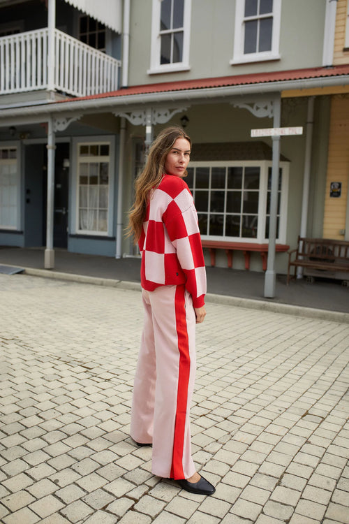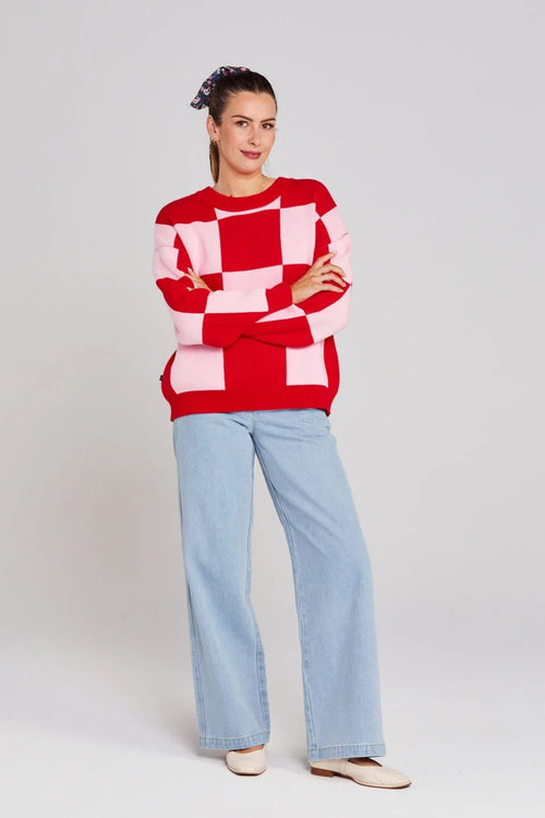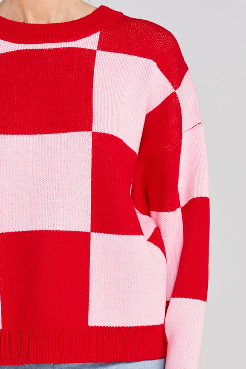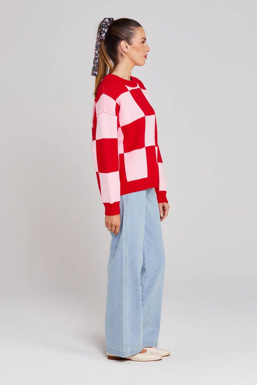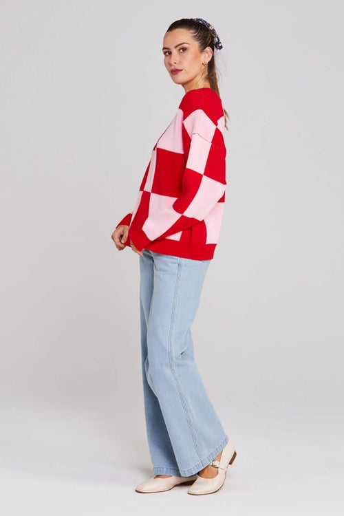 Cleo Pinky Tomato Check It Knit Jumper