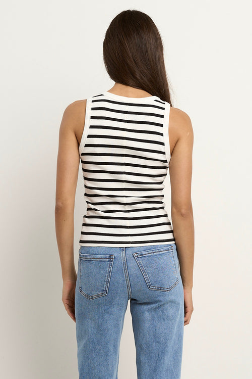 The Cobble Tank from RE:Union Label is a sleeveless stretchy rib knit tank that will fit snug and keep you cool all summer. Effortlessly versatile, this simple stripey summer tank that pairs well with a variety skirts, pants and shorts.