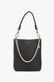 Coco Black Leather Bucket Bag with Gold Chain Detailing