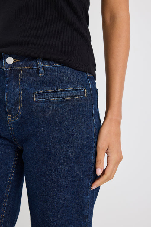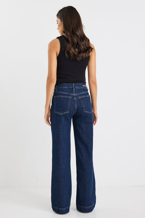 Concert Indigo Mid Rise Wide Leg Welt Pocket Jean