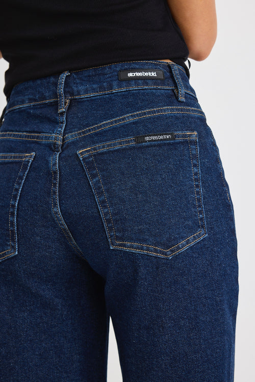 Find style and comfort with our Concert Indigo Mid Rise Wide Leg Pocket Jean by Stories Be Told. These wide-leg jeans are a must-have for women looking for denim jeans that can transition seamlessly from day to night. Made from quality denim in an indigo wash, these jeans have a mid-rise waistband for a good fit. The wide-leg style adds length, making these women's wide-leg jeans a flattering choice. With front pockets, these jeans are practical for everyday wear.