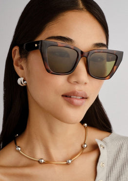 Stand out with the Dani Earrings in Gold. This modern statement piece features curves and hoops, adding a touch of sophistication to any outfit. Elevate your look with these stylish and versatile earrings.