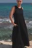 Easygoing Black Linen Blend Sleeveless Crew Neck Midi Dress
