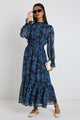 Embrace effortless elegance with the Ebony Blue Smudge Dress. Featuring a dreamy smudge print in rich blue hues, this long-sleeve maxi dress exudes sophistication while remaining comfortable and lightweight. The shirred waist and cuffs create a flattering silhouette, while the ruffled high neckline adds a romantic touch. Perfect for day-to-night dressing, just switch from flats to heels for a seamless transition.