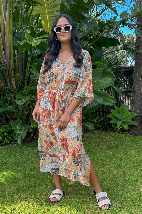 Elba Peach Paisley Mid Sleeve Midi Dress
