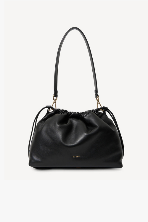 Black saben leather handbag with drawstring