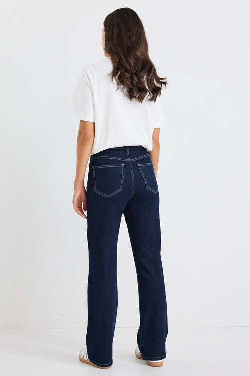 The Farah Indigo High Rise Soft Flare Jean by Stories Be Told combines everyday comfort with a flattering fit. Designed with a high-rise waist and a slight flare, these jeans create a longer, balanced silhouette. The cotton-rich denim blend offers a gentle stretch for ease of movement, while the deep indigo wash adds richness to any outfit. For best results, wash separately before wearing to avoid colour transfer. Pair with a blouse for a polished look or a simple tee for casual wear.