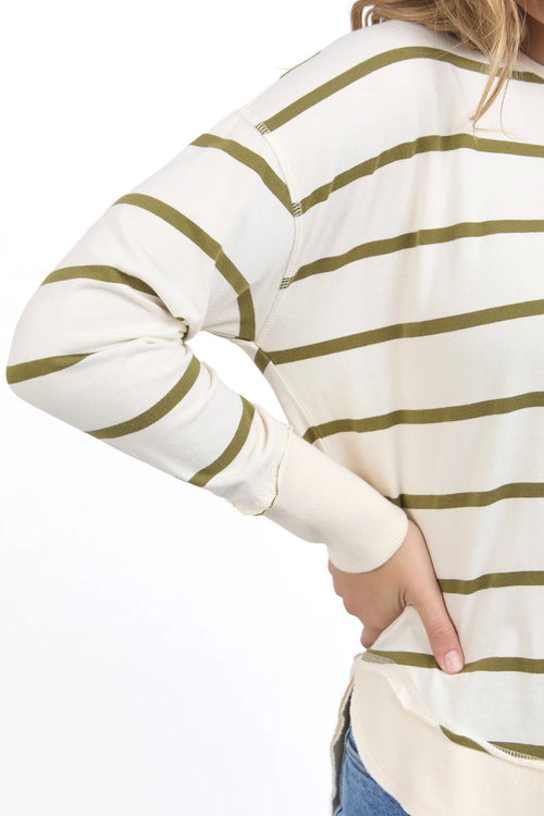 A new crew to the Foxwood range the Farrah Long Sleeve in 100% Fresh Pima Cotton features a classic crew neckline and raw edge detail. This relaxed fit jumper is an easy everyday wear.