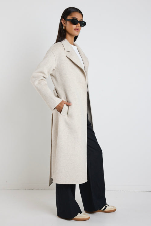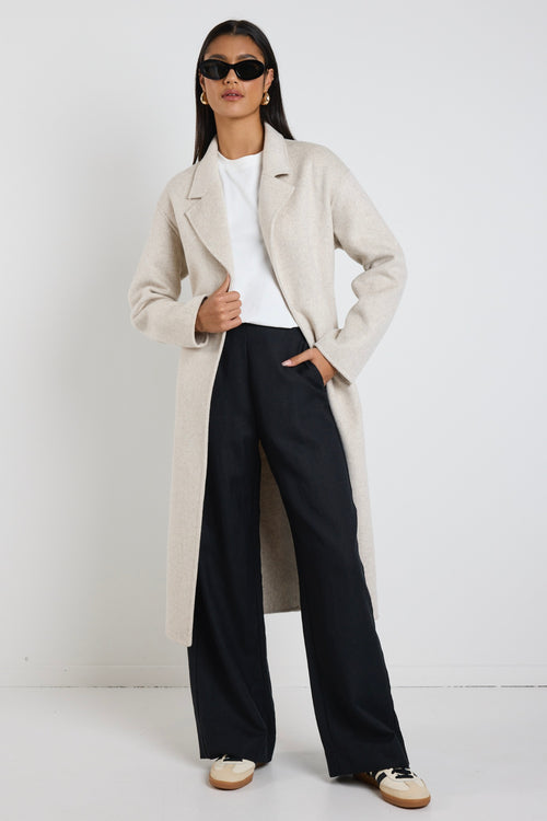 The Geneva coat is your forever layering piece. Elevated, understated, and seriously warm. Made from a premium wool blend, it offers that perfect balance of structure and softness, with a tailored silhouette that drapes effortlessly. From workdays to weekends, this timeless layer adds polish to every look.