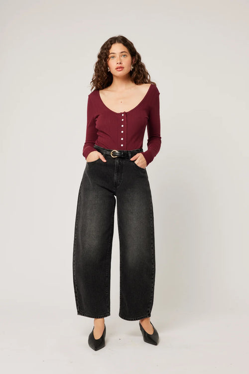 Gigi 80s Black Mid Barrel Jean