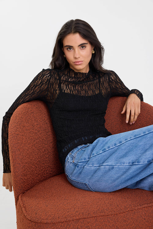 Giving Black Lace Long Sleeve Top
