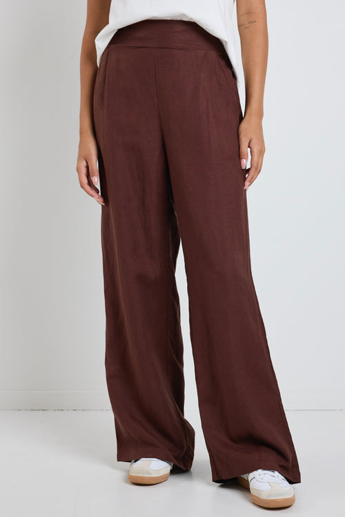 Guardian Chocolate Linen Viscose Elastic Back Pants
