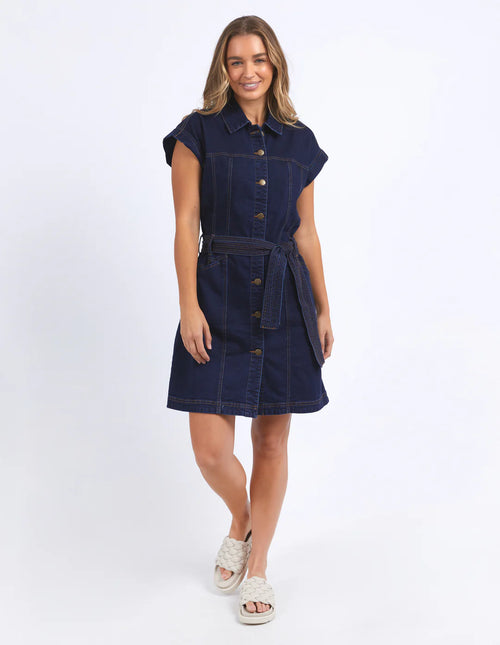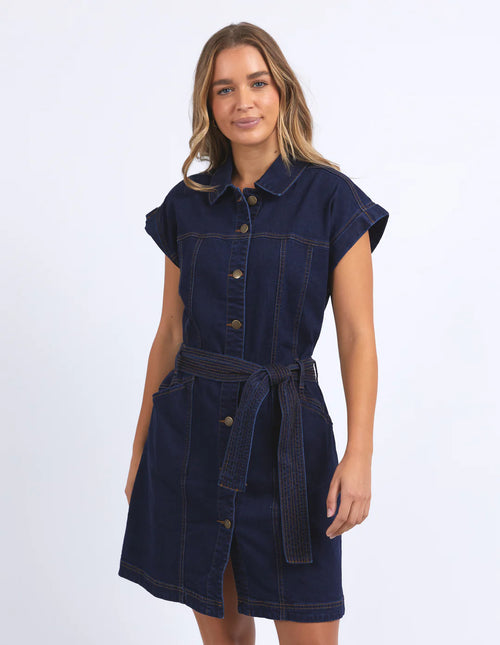 This dress gets so many comments! Simply stylish and comfort driven the Heidi Dress features a full button front with Foxwood silver hardware and a self tie waist for extra cinch if needed. The seamed panels add extra contour and shape to this flattering denim dress.
