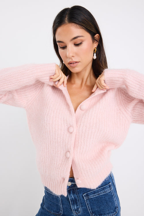 Highlight Blush Mohair Blend Crewneck Cardigan